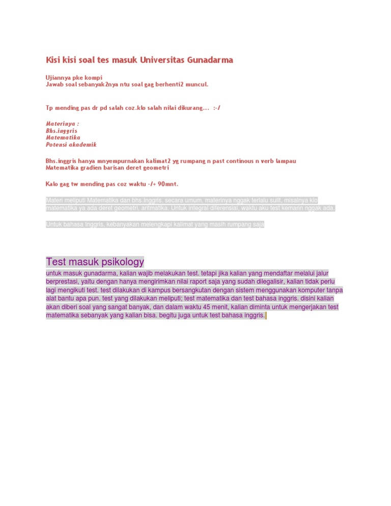 Soal Ujian Utama Psikologi Umum 2 Gunadarma - Helmi Kediris from img.dokumen.tips Universitas gunadarma terdiri dari beberapa fakultas, diantaeanya : Soal ujian utama imk terbaru, 2014 universitas gunadarma. Soal ujian utama psikologi kepribadian 2. Teknologi informasi dan komunikasi tik untuk ketahanan. Psikologi kesehatan (healthy psychology) menekankan pada peran psikologi dalam membangun dan mempertahankan kesehatan, serta mencegah dan mengobati penyakit. Berbagai soal yang harus diisi oleh pemohon sim baru atau yang akan memperpanjang sim untuk tes psikologi terbagi kedalam 6 kategori yaitu Jawaban yang tertera di soal belum tentu. Ujian pengantar teknologi informasifull description.